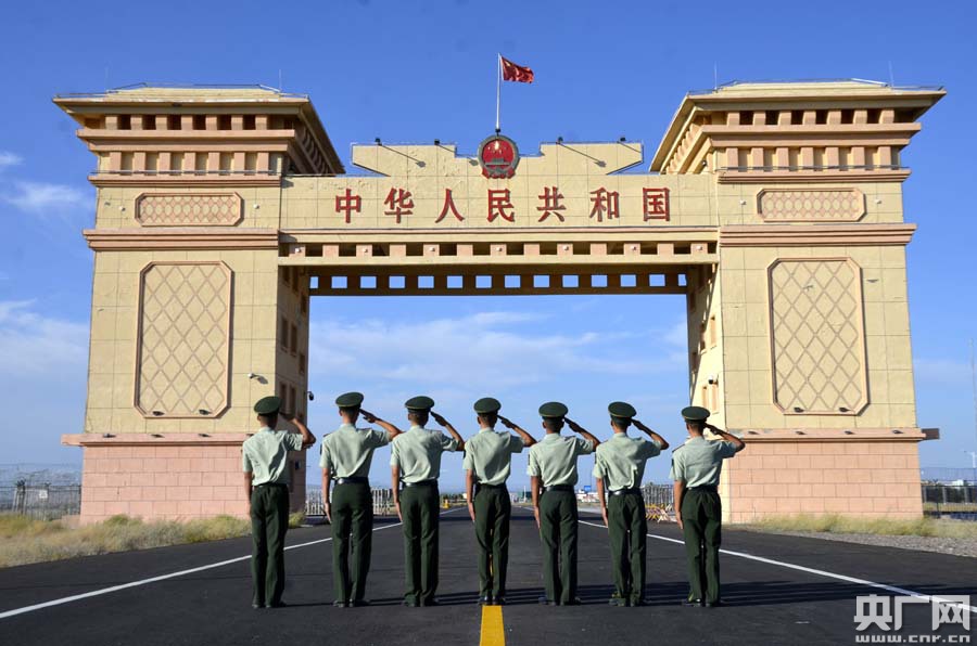 都拉塔邊檢站退伍老兵向國(guó)門敬禮告別(董紅太攝)