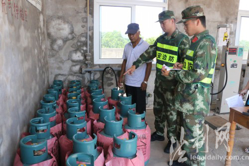 ????這個邊防派出所組織官兵對轄區(qū)船廠、液化氣站等重點部門和單位進行消防安全檢查。檢查中,官兵每到一處都仔細查看值班制度落實、監(jiān)控室、消防安全以及人防、物防、技防等防范情況,對檢查中發(fā)現(xiàn)的隱患能當場整改的責(zé)令當場整改,同時結(jié)合工作實際對行業(yè)業(yè)主進行法律法規(guī)宣傳。