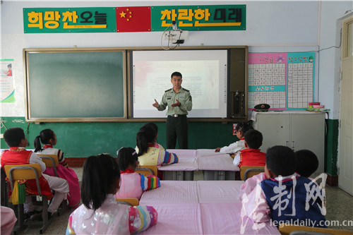 圖為邊防官兵走進(jìn)朝鮮族學(xué)校開展“勿忘國恥·振興中華”愛國主題教育活動