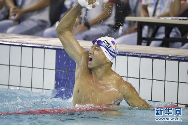 走出泳池,張政成了場上的“明星”,和幾個隊友擁抱擊掌后,便立刻被眾人圍在中間?,F(xiàn)場觀眾和其他運動員紛紛向他表示祝賀,人群中不時有人歡呼著“世界紀錄!世界紀錄!”。隨后,激動的張政披著國旗,在泳池邊跟家人、朋友合影,定格了這難忘的一刻。