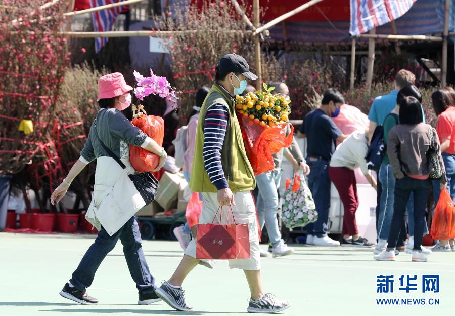 2月6日,市民在香港維多利亞公園的年花銷(xiāo)售點(diǎn)選購(gòu)鮮花。新華社記者 李鋼 攝