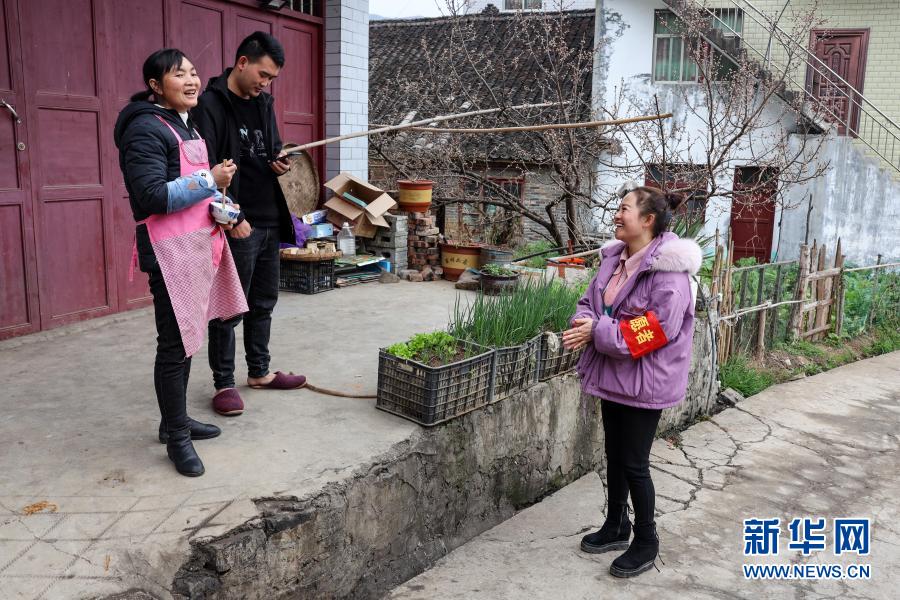 2月13日,吳窮(右)在坪子社區(qū)和村民交談。新華社記者 歐東衢攝