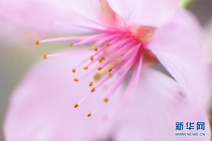 這是2月27日拍攝的武漢東湖櫻花園內(nèi)開放的櫻花。
