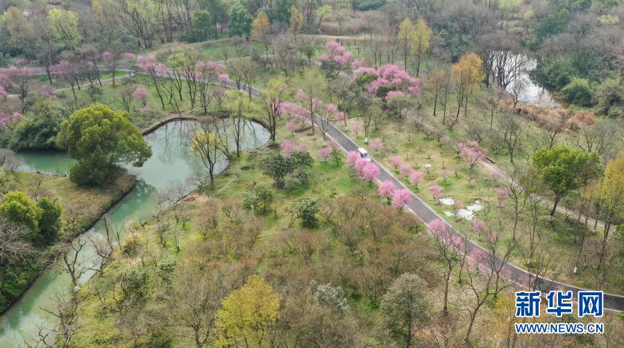 3月2日,觀光車在西溪濕地內(nèi)行駛(無人機照片)。