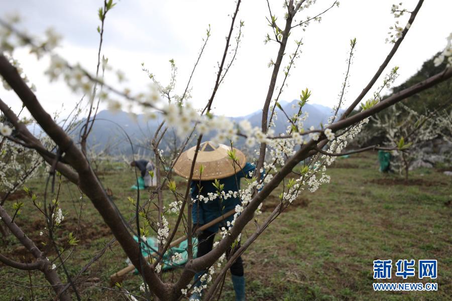 3月2日,村民在貴州省銅仁市江口縣閔孝鎮(zhèn)提紅村過(guò)江屯翠紅李種植基地進(jìn)行春管作業(yè)。新華社發(fā)(李鶴 攝)