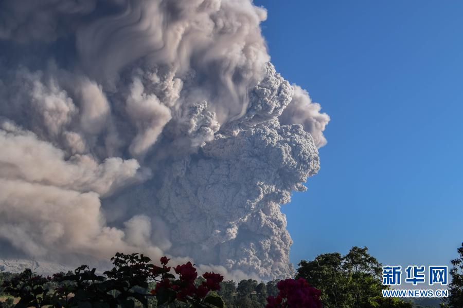 這是3月2日在印度尼西亞北蘇門答臘省卡羅拍攝的噴發(fā)中的錫納朋火山。新華社發(fā)(森比林攝)