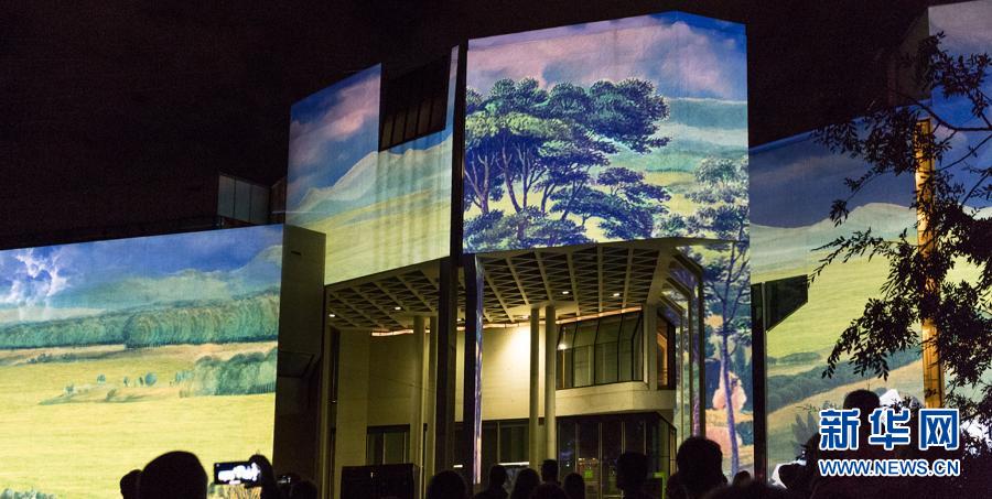 這是3月8日在澳大利亞堪培拉拍攝的國家美術(shù)館的燈光投影。新華社發(fā)(劉暢暢攝)