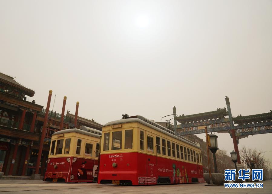 3月15日拍攝的北京前門商業(yè)街。當日,我國北方多地出現(xiàn)沙塵天氣。新華社記者 張晨霖 攝