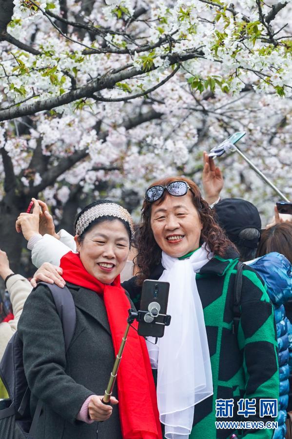 近日,南京街頭盛開的櫻花燦若云霞,吸引眾多市民游客外出賞花游玩,享受春日美景。