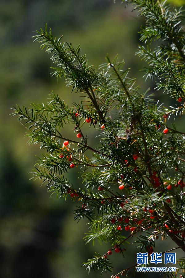 這是科研人員在西藏定日縣絨轄溝發(fā)現(xiàn)的密葉紅豆杉(2020年10月27日攝)。