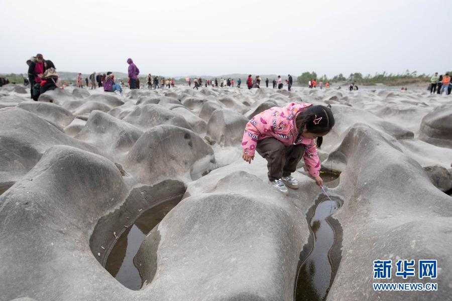 3月21日,小朋友在石灘上游玩。新華社記者 江宏景 攝