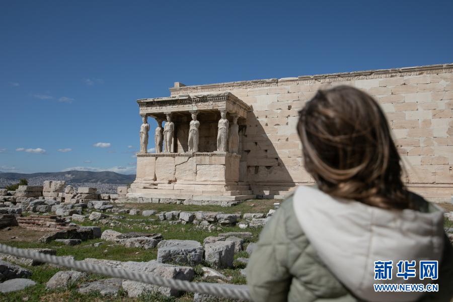 3月22日,一名游客游覽希臘雅典衛(wèi)城。希臘露天考古遺跡22日起恢復(fù)開(kāi)放。游客需遵守保持社交距離和佩戴口罩等防疫規(guī)定。新華社發(fā)(萊夫特里斯·帕察里斯攝)