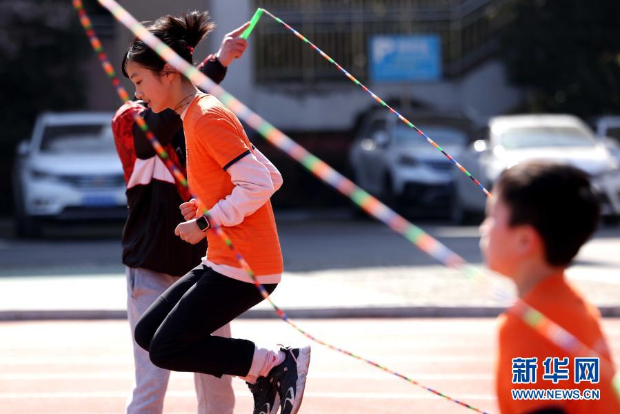 3月23日,在合肥市大通路小學(xué)新海校區(qū),學(xué)生在大課間練習(xí)花樣跳繩。