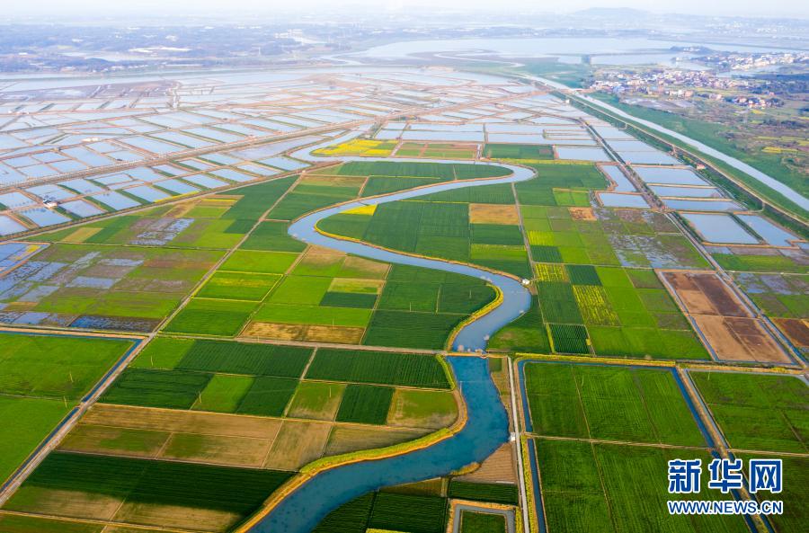 3月24日拍攝的江西省九江市彭澤縣芙蓉農(nóng)場(chǎng)的田園風(fēng)光(無(wú)人機(jī)照片)。