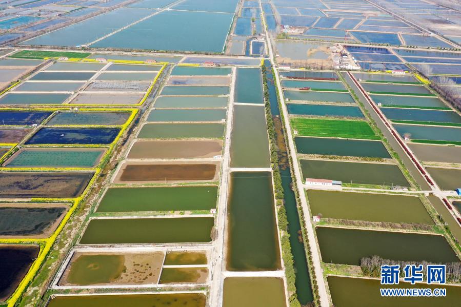 3月24日拍攝的江蘇省淮安市洪澤區(qū)西順河鎮(zhèn)國(guó)蟹園(無(wú)人機(jī)照片)。