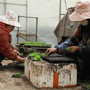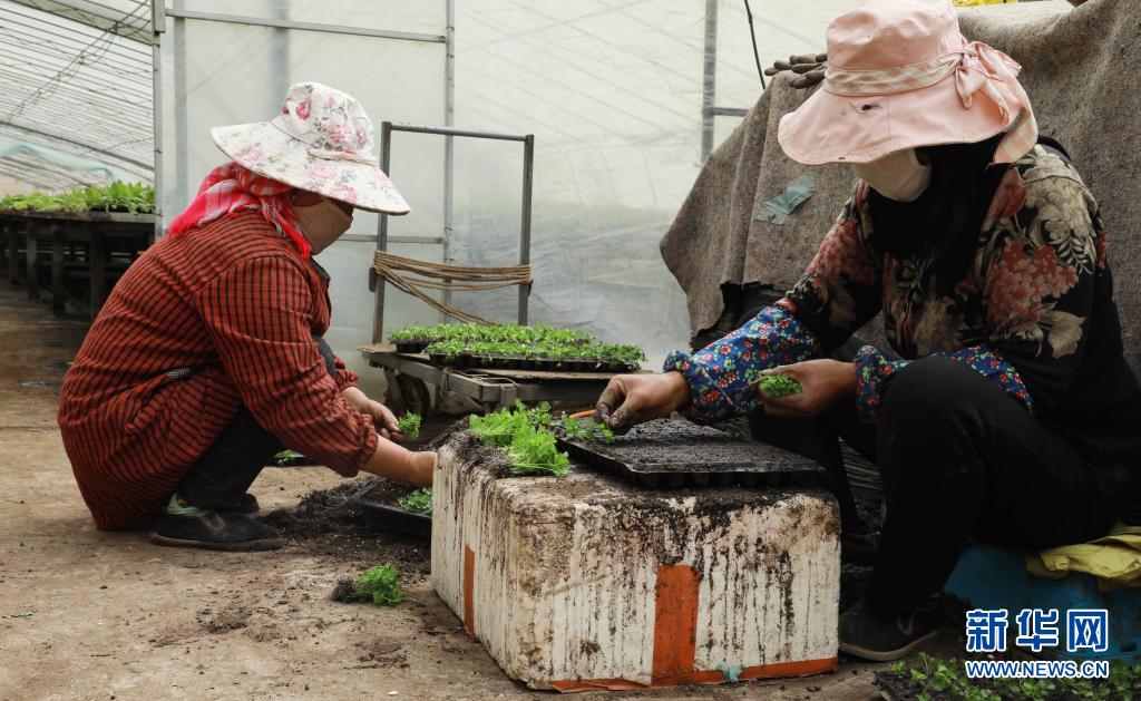 3月25日,位于青海省海西蒙古族藏族自治州都蘭縣香日德鎮(zhèn)下柴源村的都蘭柴源蔬菜種植專(zhuān)業(yè)合作社工作人員在嫁接芹菜苗。新華社記者 王艷 攝