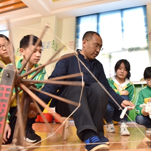 4月7日,威縣土布紡織技藝傳承人高慶海在威縣第四小學(xué)向?qū)W生演示老粗布紡織技藝。近年來(lái),河北省邢臺(tái)市威縣積極開(kāi)展“非遺傳承進(jìn)校園”活動(dòng),將當(dāng)?shù)靥厣沁z項(xiàng)目引入學(xué)校課堂,讓學(xué)生近距離感受民間傳統(tǒng)技藝的魅力,促進(jìn)非遺文化的保護(hù)和傳承。新華社記者 朱旭東 攝