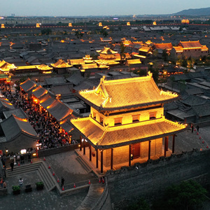 夜幕降臨,位于山西省太原市晉源區(qū)的太原古縣城流光溢彩,游人如織。太原古縣城始建于明代,占地面積約0.8平方公里,因其造型像一只飛鳥(niǎo),也被譽(yù)為“鳳凰城”。歷經(jīng)8年修繕后,太原古縣城于2021年5月重新對(duì)外開(kāi)放。