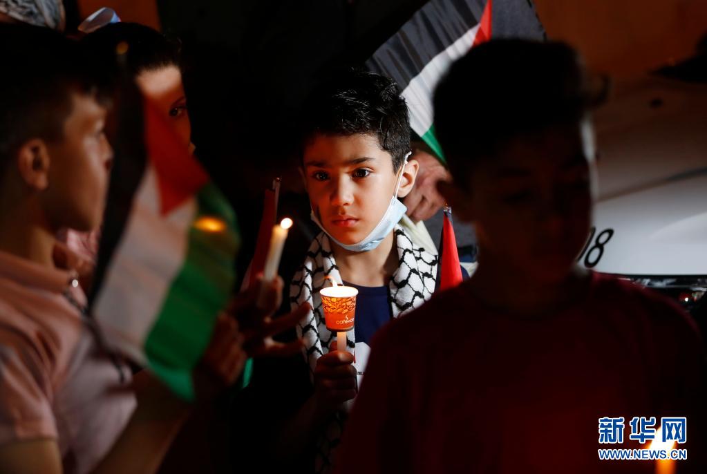 5月20日,一名兒童在約旦河西岸城市納布盧斯參加聲援活動(dòng)。
