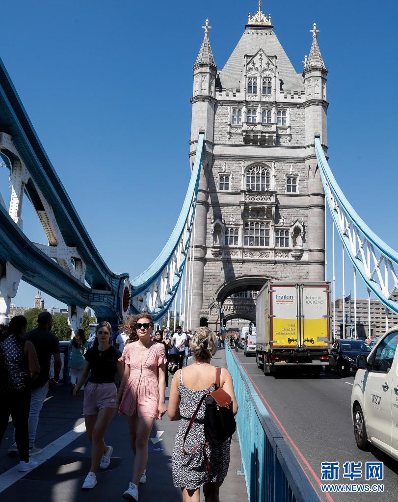 6月1日,人們在英國倫敦塔橋上行走。