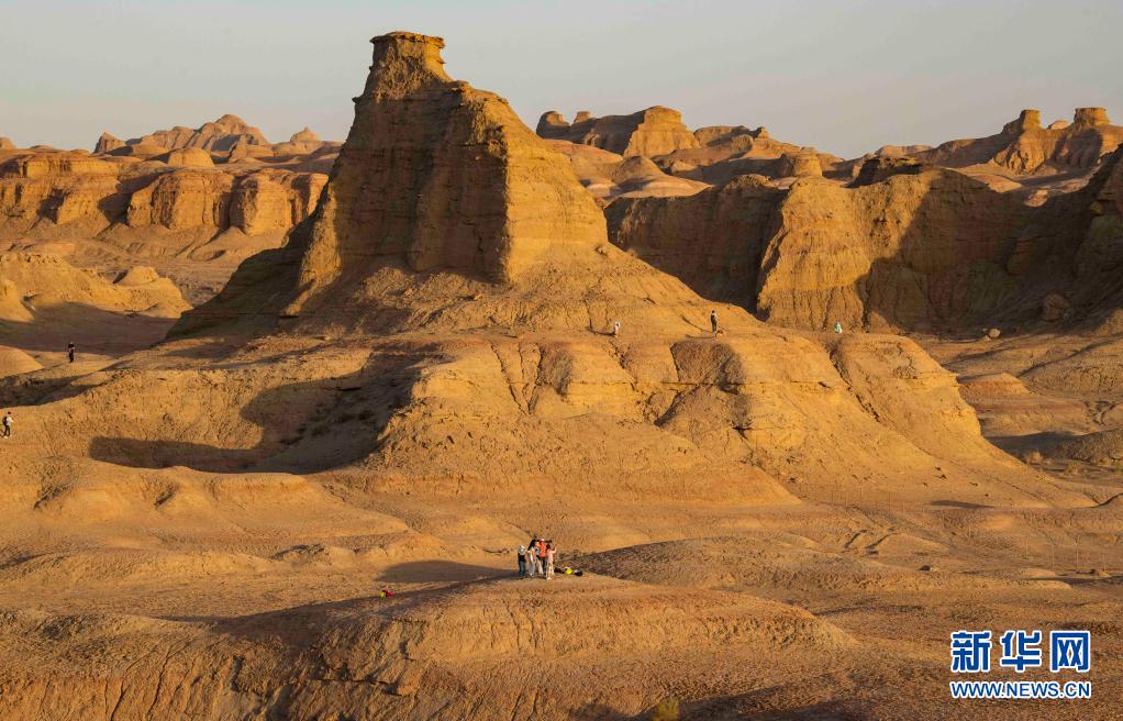 游客在新疆克拉瑪依烏爾禾世界魔鬼城景區(qū)內(nèi)拍照游玩(6月21日攝)。