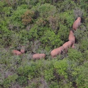 6月22日在云南省玉溪市峨山縣大龍?zhí)多l(xiāng)附近拍攝的象群(無(wú)人機(jī)視頻截圖)。