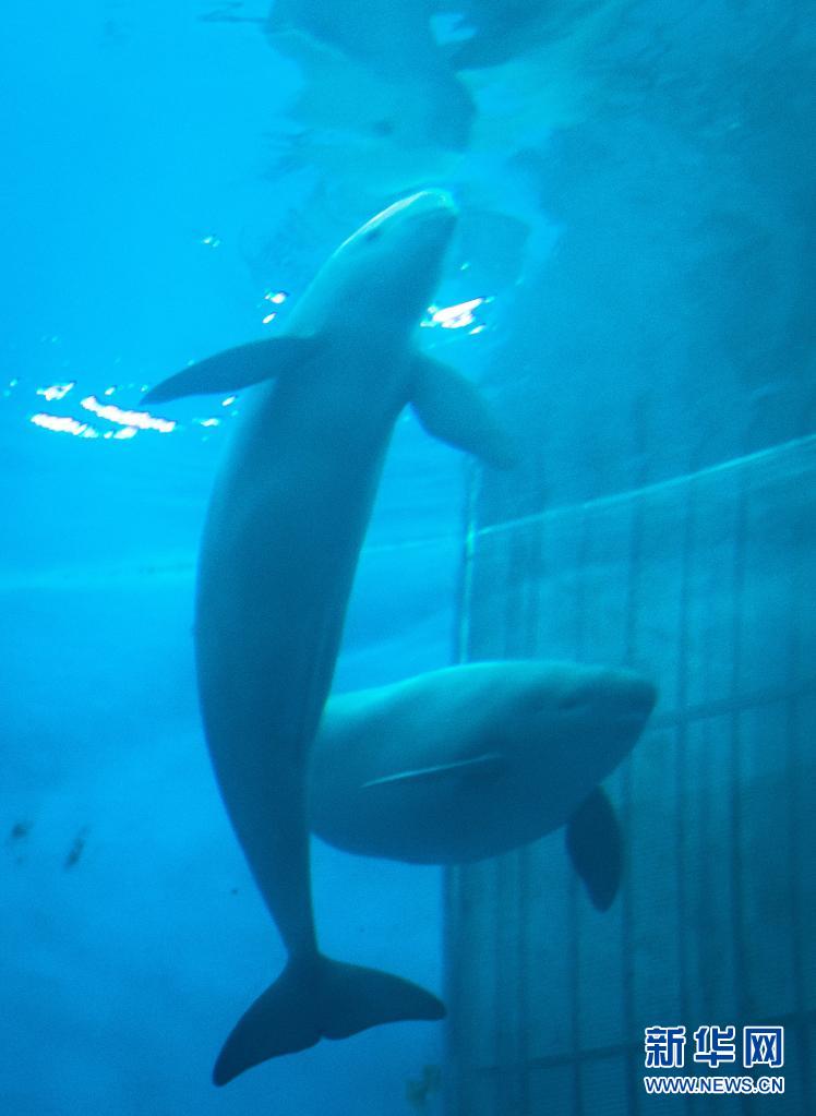 7月5日,江豚媽媽洋洋和小江豚YYC在水中游動。新華社記者肖藝九攝