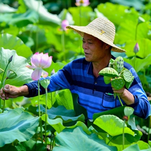 盛夏時(shí)節(jié),湖南省湘潭市雨湖區(qū)姜畬鎮(zhèn)聯(lián)映村的蓮蓬逐漸成熟,當(dāng)?shù)厣忁r(nóng)忙著采摘蓮蓬、荷花。近年來,當(dāng)?shù)卮罅Πl(fā)展“蓮子經(jīng)濟(jì)”,特色產(chǎn)業(yè)帶動(dòng)村民增收致富。
