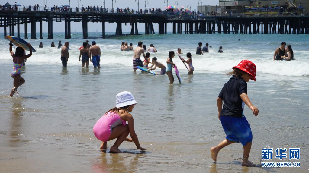 7月11日,人們在美國加利福尼亞州圣莫尼卡海灘消暑。