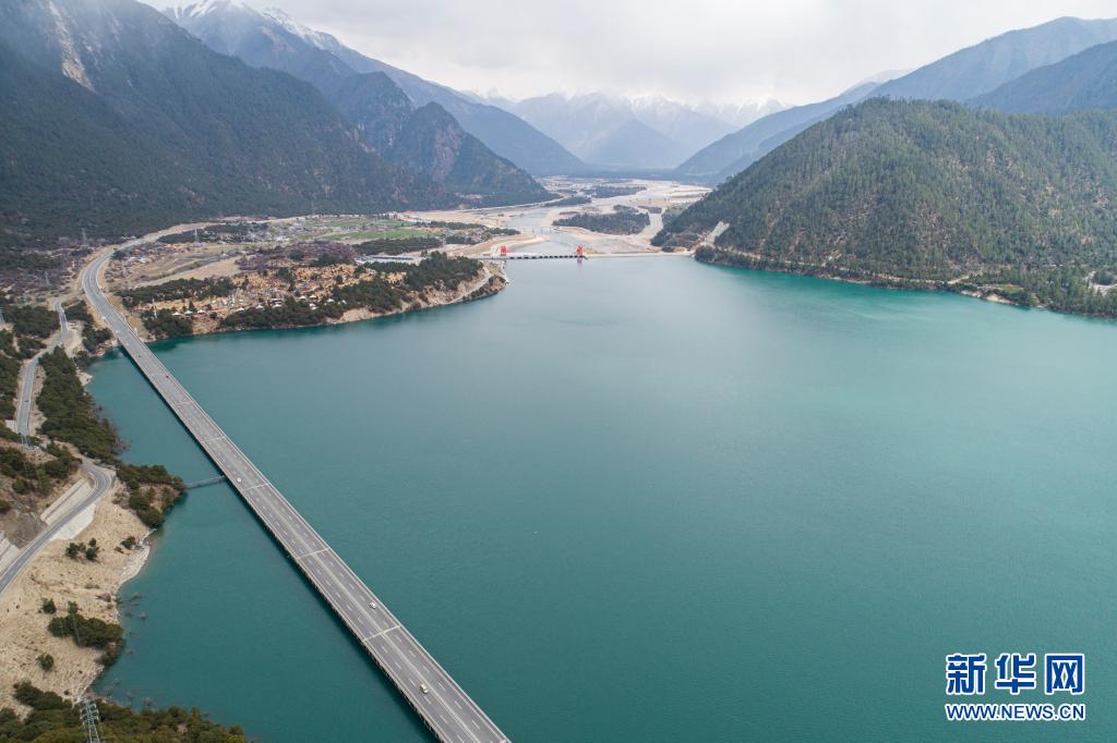 這是4月4日拍攝的拉林高等級(jí)公路(無人機(jī)照片)。