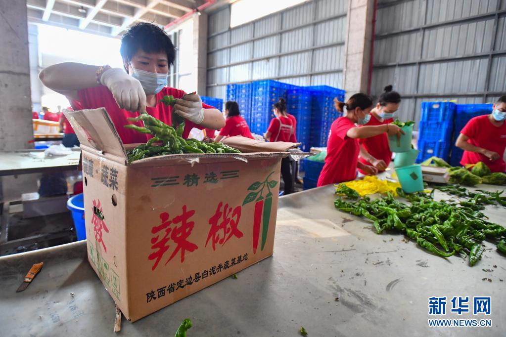 8月1日,在位于長沙市望城區(qū)的湖南高星物流園,蔬菜倉庫的工作人員分揀辣椒。