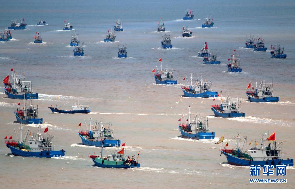 當(dāng)日中午12時,浙江沿海地區(qū)的部分漁船結(jié)束伏季休漁,駛出漁港,奔赴漁場。