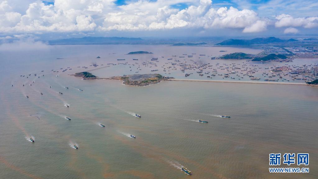 當(dāng)日中午12時,浙江沿海地區(qū)的部分漁船結(jié)束伏季休漁,駛出漁港,奔赴漁場。