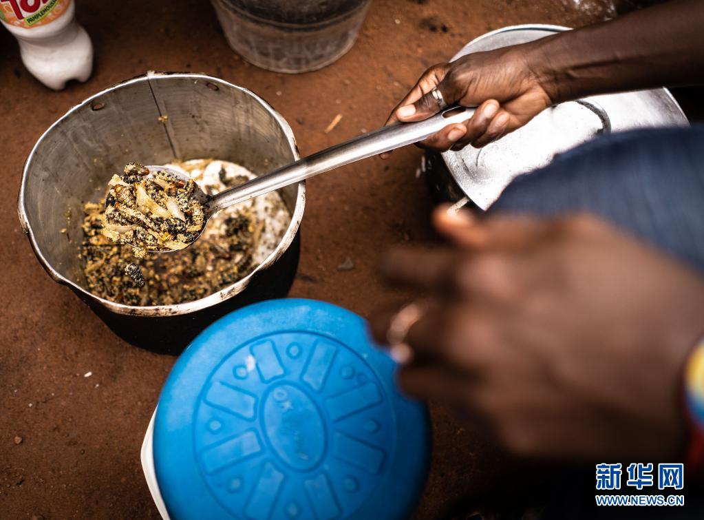 對于生活在糧食匱乏狀況下的居民,蟲子不僅意味著食物可以果腹,也是財富的來源。在雨季,來自首都班吉的經(jīng)銷商每天都騎著摩托車來到當?shù)?,收購當?shù)鼐用褡淼拿x,然后賣到首都消費者手里。