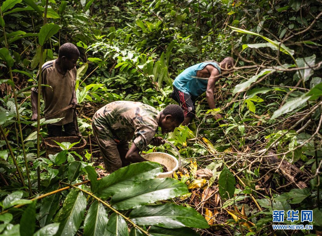 7月18日清晨,中非共和國洛巴耶省當(dāng)?shù)氐馁赂衩兹嗽谏掷镎蚁x子。