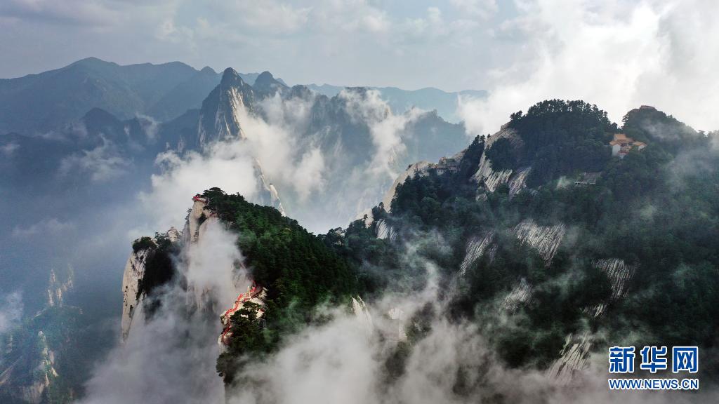 8月14日,奇景幻影的西岳華山風光(無人機照片)。