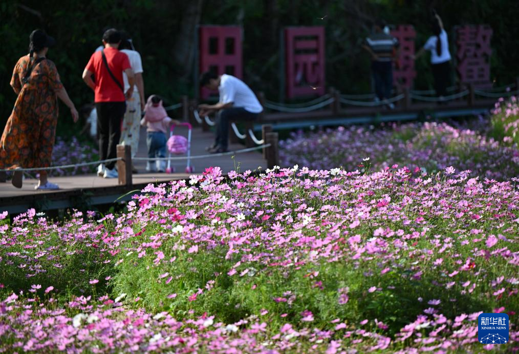 博鳌亚洲论坛2026年年会临近,琼海市博鳌镇南强村数十亩主题花海迎来盛放期,吸引游客前来踏青赏花。