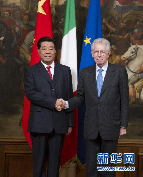 賈慶林會(huì)見意大利總理蒙蒂