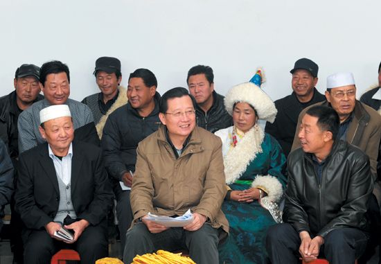 11月22日,省委書記、省人大常委會(huì)主任強(qiáng)衛(wèi)深入貴德縣河陰鎮(zhèn)大史家村,面對(duì)面向基層黨員和農(nóng)牧民群眾宣講黨的十八大精神。(記者 劉端強(qiáng) 攝)