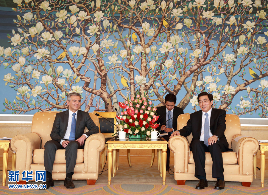 ??? 7月14日,中共中央政治局委員、北京市委書記郭金龍?jiān)诒本?huì)見馬耳他國(guó)民黨領(lǐng)袖布蘇蒂爾。 新華社記者 丁海濤 攝