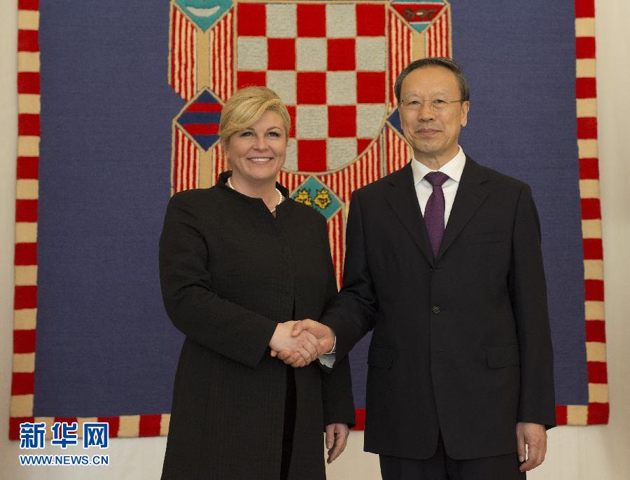 ??? 11月13日,在位于克羅地亞薩格勒布的總統(tǒng)府,克羅地亞總統(tǒng)基塔羅維奇(左)和中共中央書(shū)記處書(shū)記、全國(guó)政協(xié)副主席杜青林握手。正在克羅地亞訪(fǎng)問(wèn)的中共中央書(shū)記處書(shū)記、全國(guó)政協(xié)副主席杜青林13日在薩格勒布分別會(huì)見(jiàn)了克羅地亞總統(tǒng)基塔羅維奇和議長(zhǎng)萊科。新華社發(fā)(米紹·利沙寧攝)