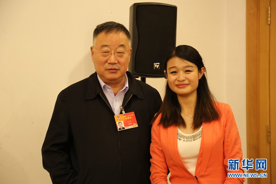 ????2015年3月15日,全國政協(xié)委員、中科院院士、氣象學(xué)會理事長秦大河做客新華網(wǎng)2015全國兩會特別訪談。圖為主持人與秦大河合影。
