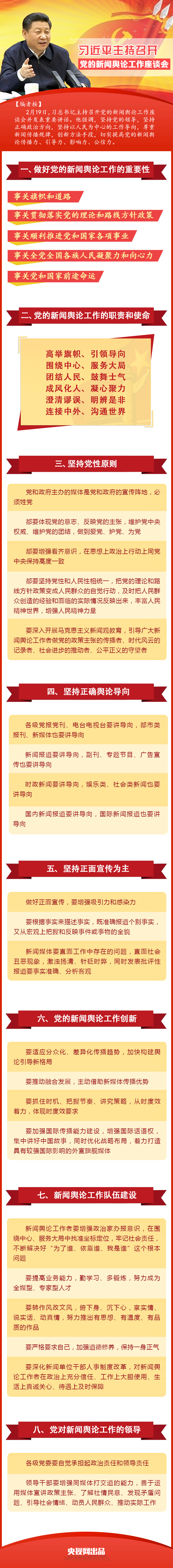 習(xí)近平強(qiáng)調(diào),做好黨的新聞?shì)浾摴ぷ?,事關(guān)旗幟和道路,事關(guān)貫徹落實(shí)黨的理論和路線方針政策,事關(guān)順利推進(jìn)黨和國家各項(xiàng)事業(yè),事關(guān)全黨全國各族人民凝聚力和向心力,事關(guān)黨和國家前途命運(yùn)。