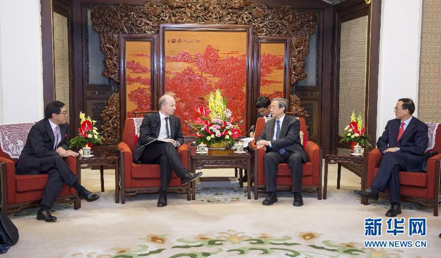 ??? 6月7日,中國國務(wù)院副總理馬凱在北京中南海紫光閣會見國際證監(jiān)會組織理事會主席、香港證監(jiān)會行政總裁歐達禮和香港證監(jiān)會主席唐家成。新華社記者 謝環(huán)馳 攝