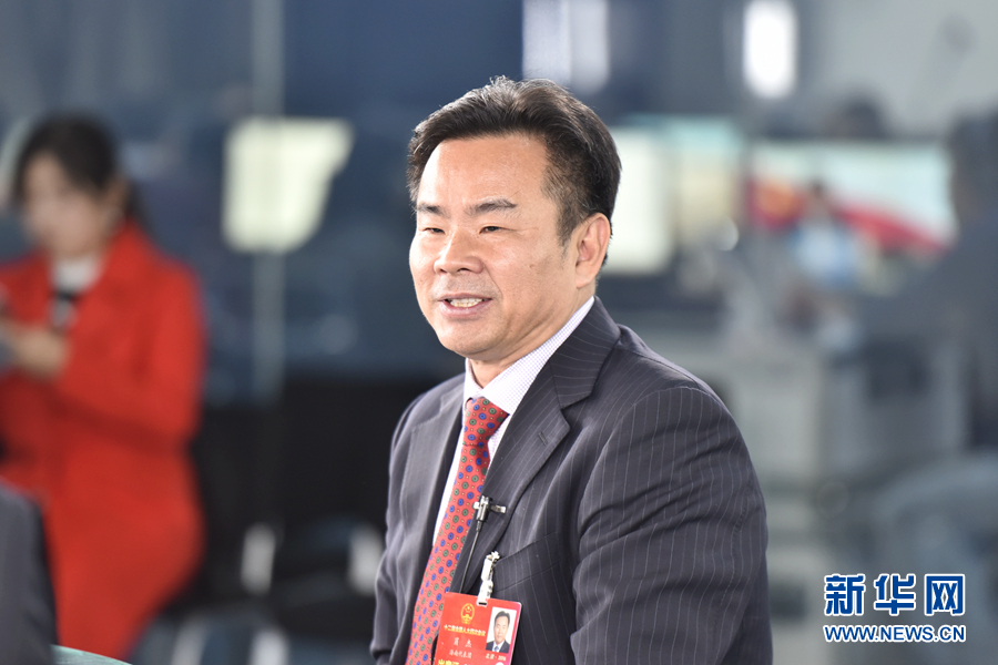 2016年3月13日,全國(guó)人大代表、海南省三沙市委書記、市政府市長(zhǎng)肖杰做客新華網(wǎng)兩會(huì)訪談直播間。圖為肖杰。新華網(wǎng) 郭小天 攝