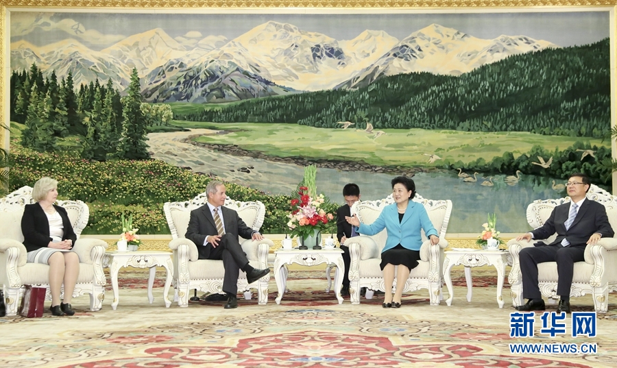 9月11日,國務院副總理劉延東在北京人民大會堂會見出席全球音樂院校校長交流季的中外校長。 新華社記者 丁林 攝