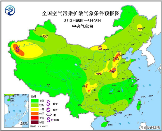 3月1日至7日,南方地區(qū)還將持續(xù)多陰雨天氣,強(qiáng)度多以小到中雨為主,其中3日至4日,江南、華南北部部分地區(qū)有大雨、局地有暴雨,并可能伴有強(qiáng)對(duì)流天氣。南方陰雨間歇期,還可能出現(xiàn)大霧天氣,這些地區(qū)的公眾出行時(shí)一方面要注意道路濕滑造成的不便,另一方面還要防范低能見度的影響。