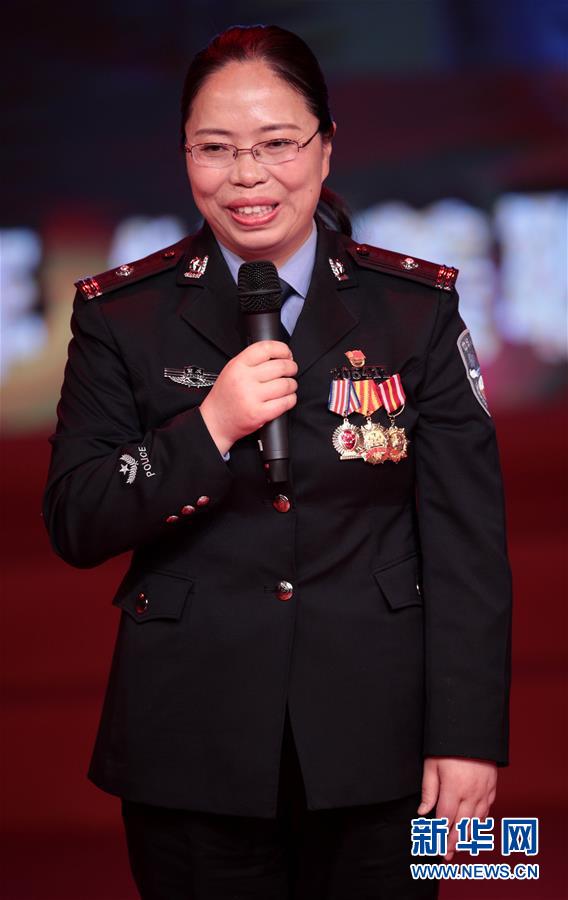 重慶市銅梁區(qū)公安局刑事偵查支隊三大隊大隊長楊發(fā)英在“最美職工”發(fā)布儀式上(4月25日攝)。新華社記者 才揚 攝