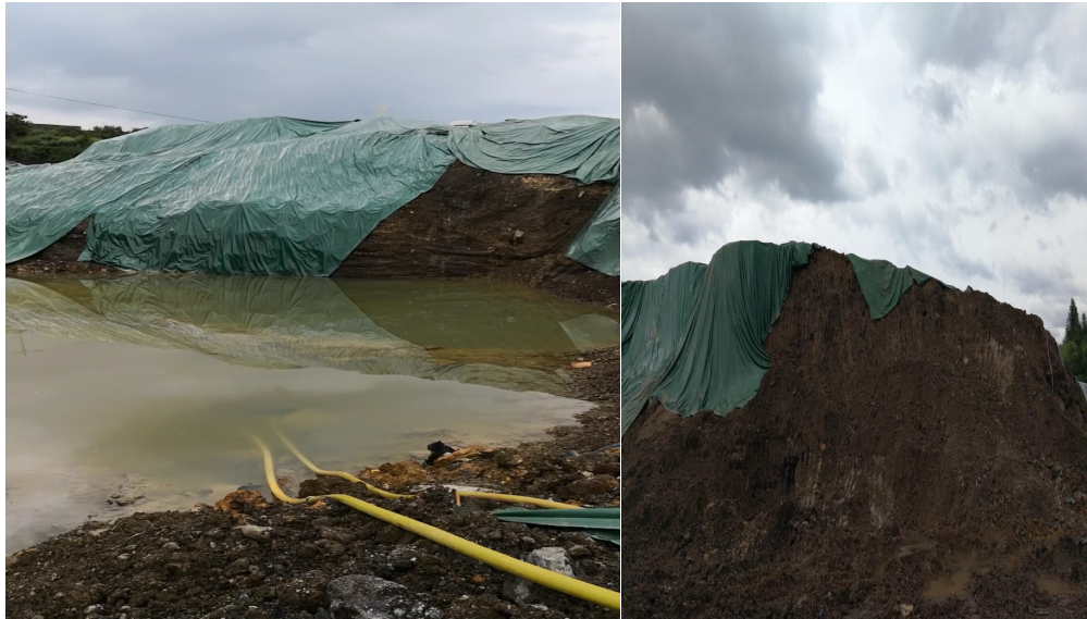 圖1 含鉛廢渣堆場(chǎng)集水嚴(yán)重、防滲膜破裂