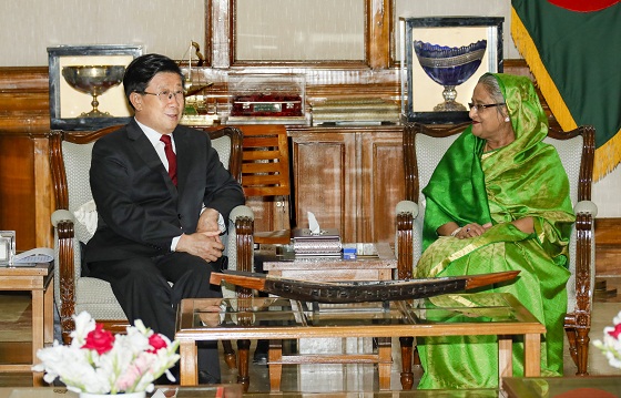 趙克志首先轉(zhuǎn)達了習(xí)近平主席和李克強總理對哈西娜總理的親切問候。趙克志指出,習(xí)近平主席兩年前對孟加拉國進行了歷史性訪問,與哈西娜總理一致決定將中孟關(guān)系提升為戰(zhàn)略合作伙伴關(guān)系,開啟了中孟友好新篇章。中孟是世代友好的好鄰居和共同發(fā)展的好伙伴。中方愿同孟方一道,認(rèn)真落實兩國領(lǐng)導(dǎo)人重要共識,加強發(fā)展戰(zhàn)略對接,拓展各領(lǐng)域交流合作,共同推進“一帶一路”建設(shè),深化在反恐、打擊網(wǎng)絡(luò)犯罪、打擊跨國犯罪和重大項目安保等方面的務(wù)實合作,不斷充實中孟戰(zhàn)略合作伙伴關(guān)系內(nèi)涵,更好地造福兩國和兩國人民。
